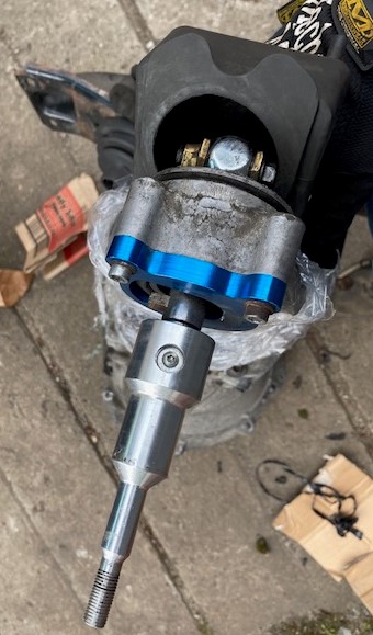 2) Bellhousing adapter - odřízne bellhousing z převodovky, namontuje se adapter na její přední část a na ten adapter se namontuje bellhousing z automatu (kdyby bylo třeba mám jeden na prodej). Nutno použít jejich přítlačák a spojku